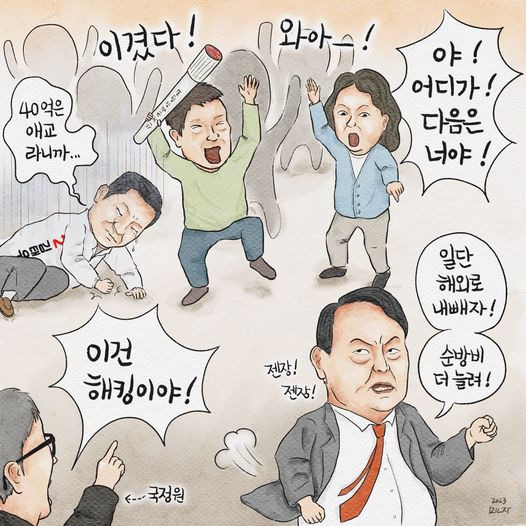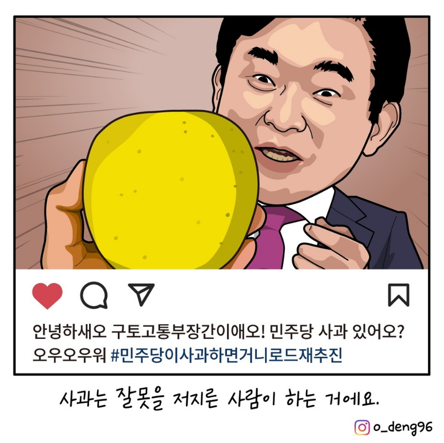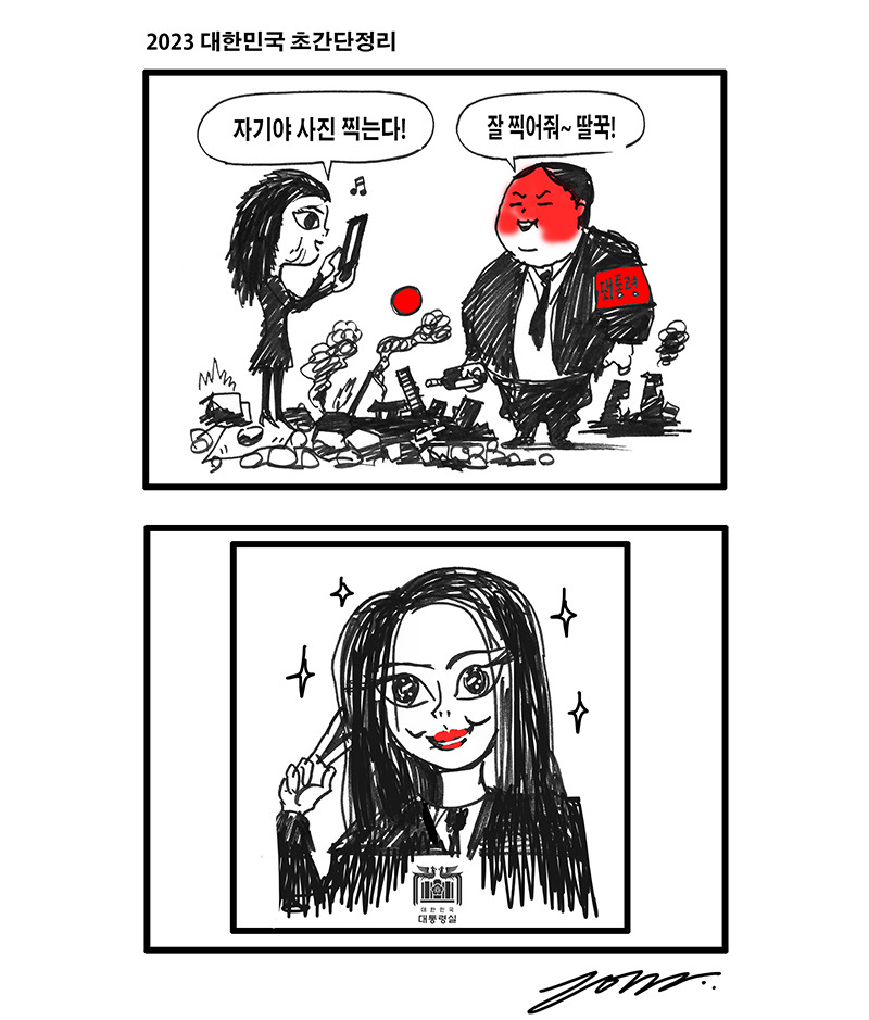 윤스타그램 메뉴는 윤석열 대통령 또는 정치권과 관련한 풍자 이미지나 카툰을 모아서 보여드립니다. 윤 대통령은 '정치 풍자는 국민의 권리'라고 말했을 정도로 자신에 대한 비판에 열려 있는 분입니다. 윤스타그램에 추가하고 싶은 내용이 있으면 관련 자료를 윤타임 이메일 yoontime.kr@gmail.com 으로 보내주세요.